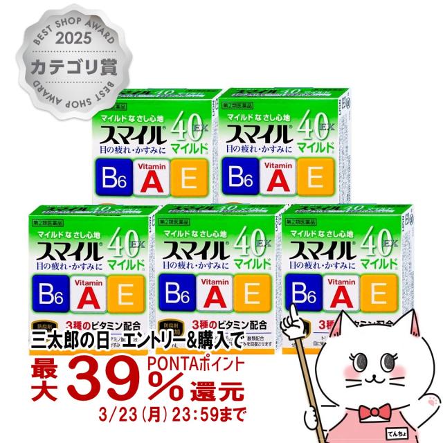 【三太郎の日 ポイント39%還元】【第2類医薬品】[セット]スマイル40EXマイルド 15ml×5個[ライオン][目薬/目の疲れ/目のかすみ][メール便発送OK] (6043228-set4)