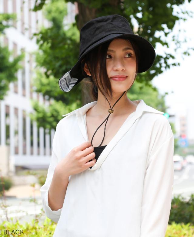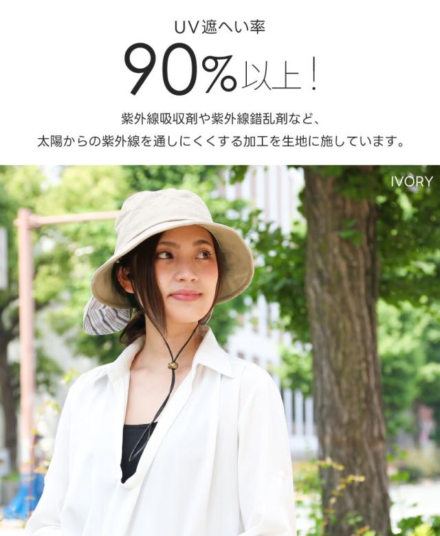 【メール便1枚のみ送料無料】UVカット あご紐・ネックカバー付きハット 裏地メッシュ 手洗い サイズ調節 ワイヤー調節 抗菌防臭 夏 レディース UVカット90%以上母の日【N】【M】