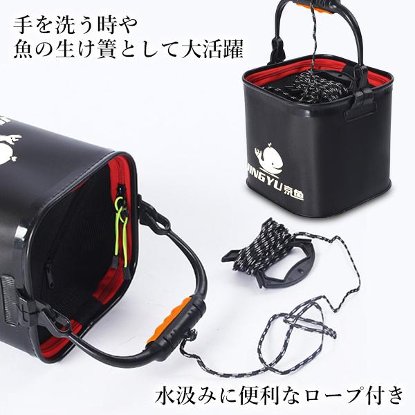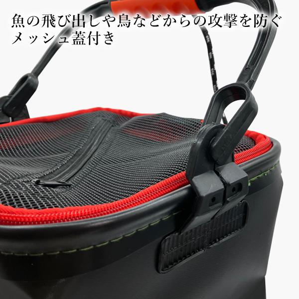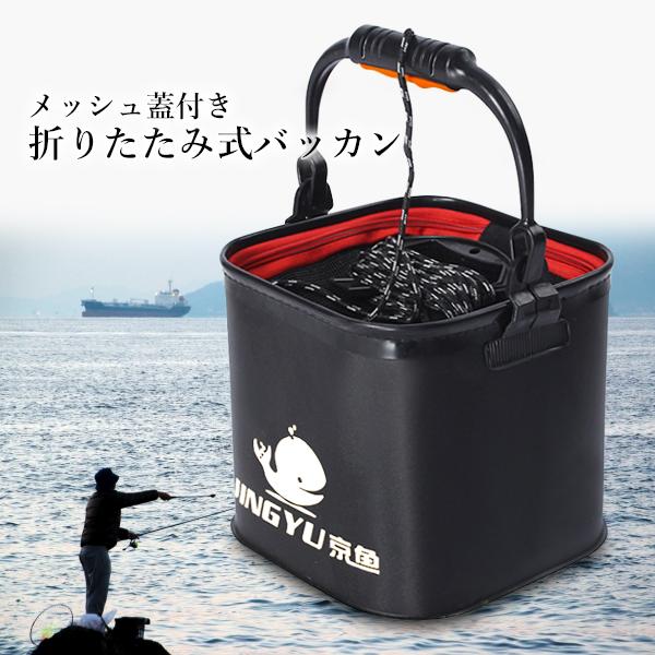 バッカン 釣り 折りたたみ メッシュ蓋付き ブラック フィッシングバッグ フィッシュ バケツ 軽量 コンパクト ロープ付き (管理S) 送料無料
