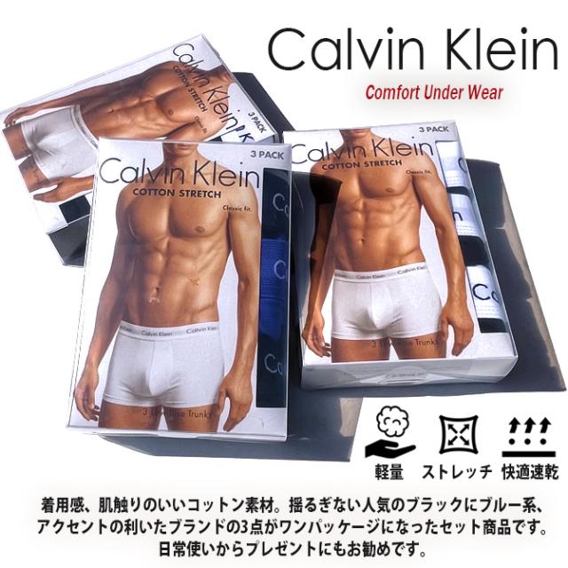 カルバンクライン ボクサーパンツ ローライズ Calvin Klein CK Men's UnsderWear Cotton Stretch 3-pack 前閉じ 3枚組 S M Lサイズ 父の日 ギフト