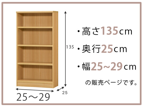 オーダー本棚 標準棚板タイプ 幅25-29cm 奥行25cm 高さ135cm ( 本棚 ラック オーダー 多目的 棚 壁面収納 日本製 オープンラック リビング収納 収納 家具 シェルフ 壁面 )