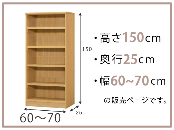 オーダー本棚 標準棚板タイプ 幅60-70cm 奥行25cm 高さ150cm ( 本棚 ラック オーダー 多目的 棚 壁面収納 日本製 オープンラック リビング収納 収納 家具 シェルフ 壁面 )
