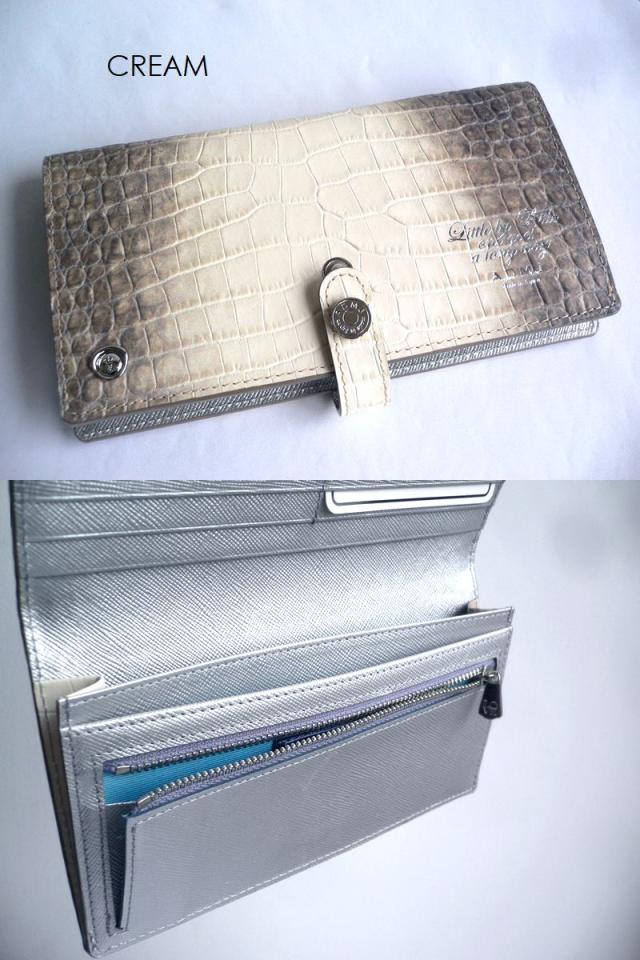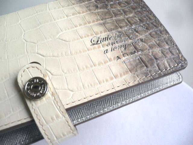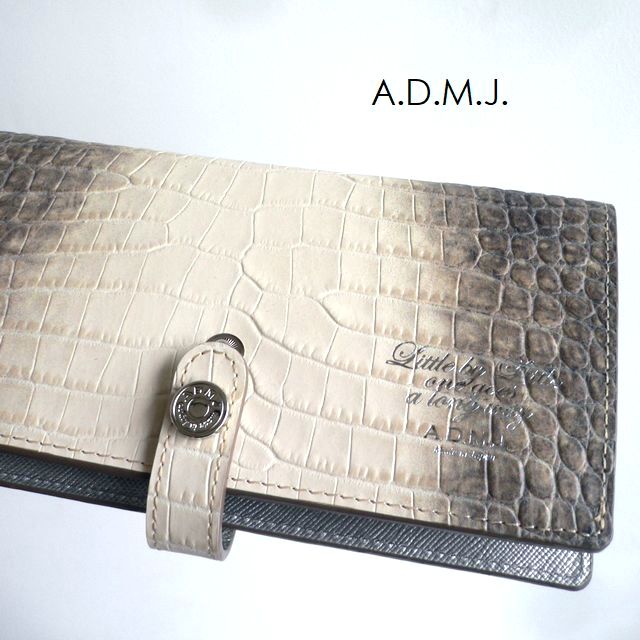 クーポン対象外 ノベルティ ADMJ エーディーエムジェイ 長財布 牛革 クロコ型押し ロングウォレット 23SA06006 ホワイト/クリーム