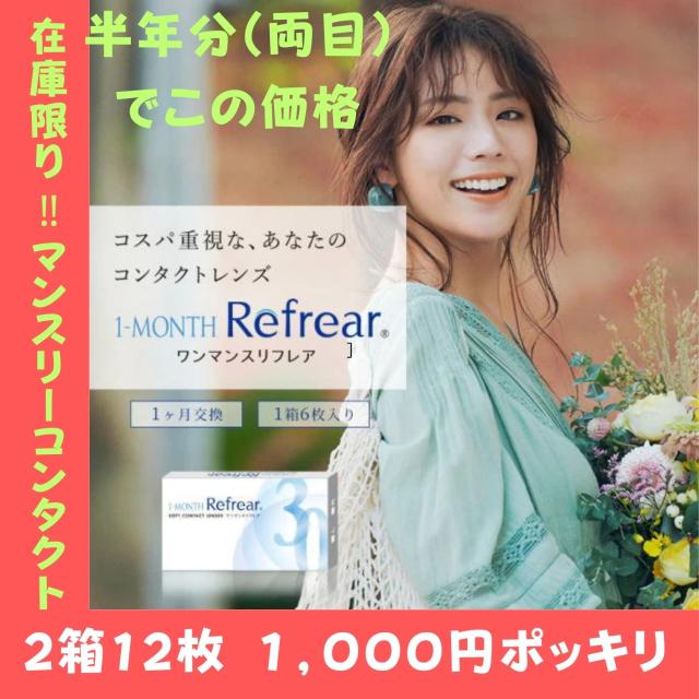 クリアコンタクト コンタクトレンズ マンスリー リフレア 1month ワンマンス 1ヵ月 2箱12枚入り refrear 1カ月 低含水 38% BC8.7 DIA14.0 非イオンレンズ 1000円ぽっきり