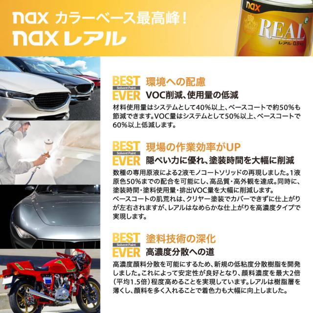 naxスタビR NEOは、naxレアル専用に開発された配合剤です。配合された特殊成分が塗装時のなじみ、乾燥促進、メタルむらを制御します。