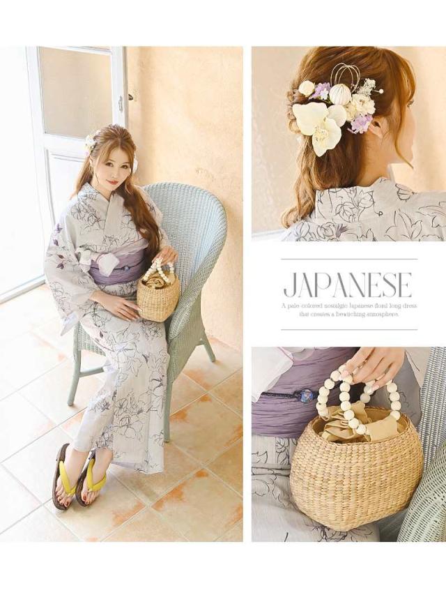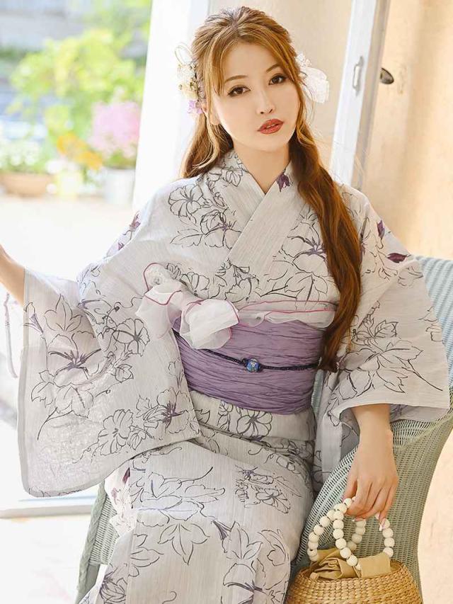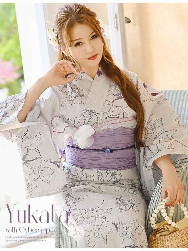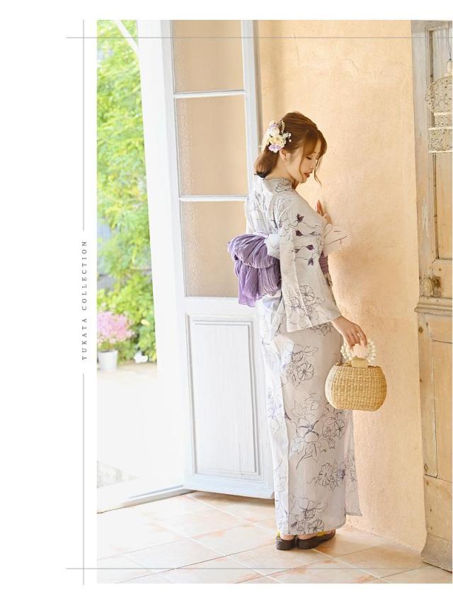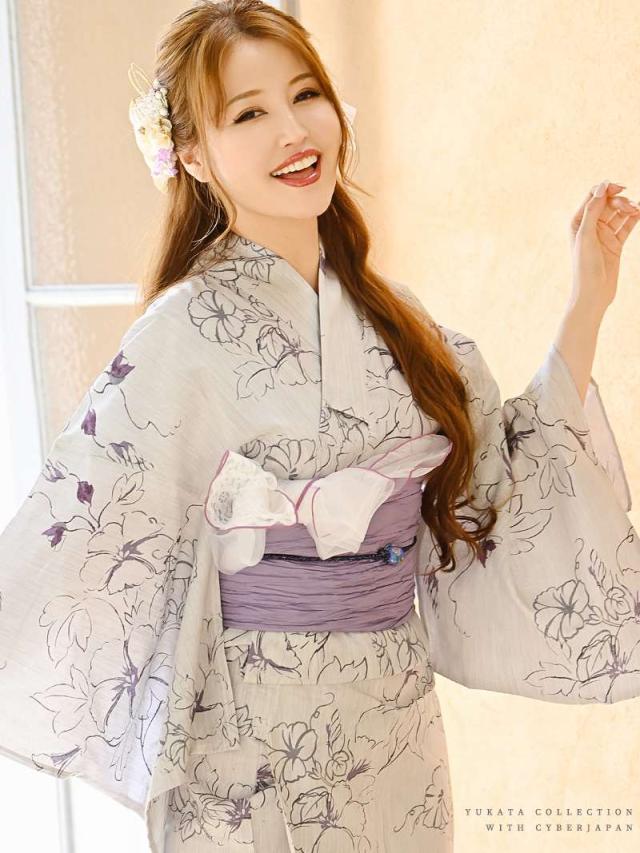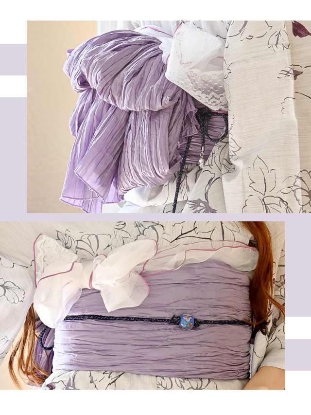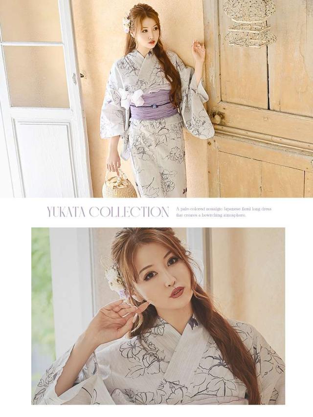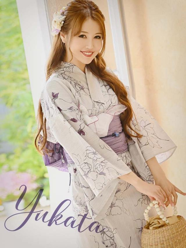☆パープルの帯がセットになったお得なキャバ浴衣は、いつもと違う雰囲気に周囲の視線を集めること間違いなしのレディース浴衣になっています。