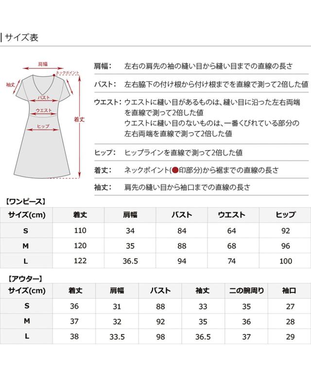 S/着丈110|肩幅34|身幅42|ウエスト幅32|ヒップ92