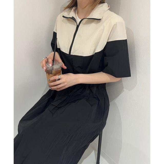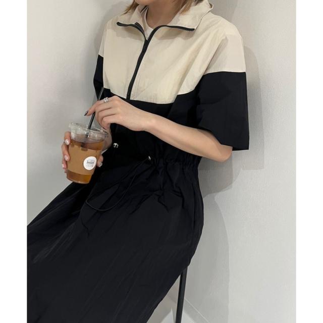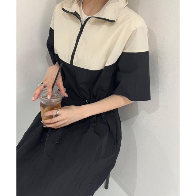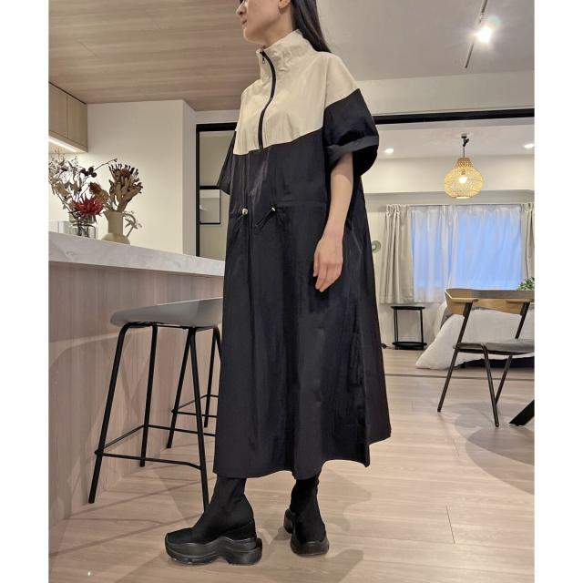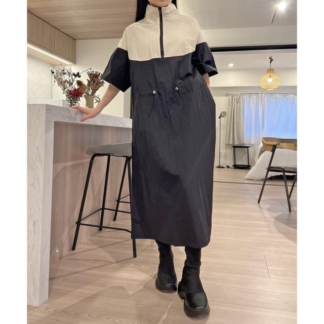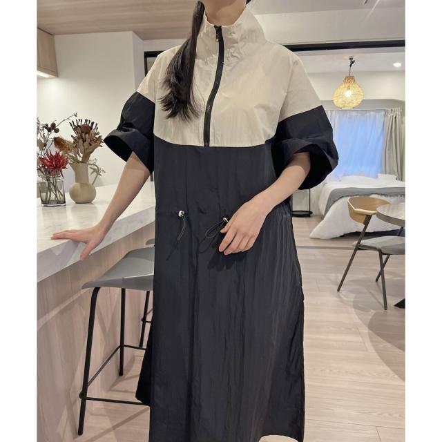 ジュエローブ/ハーフジップバイカラーシャカシャカワンピース