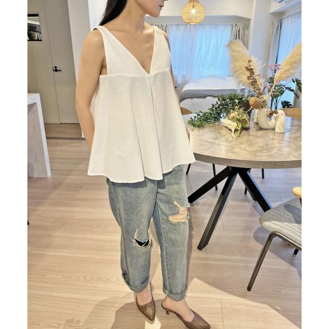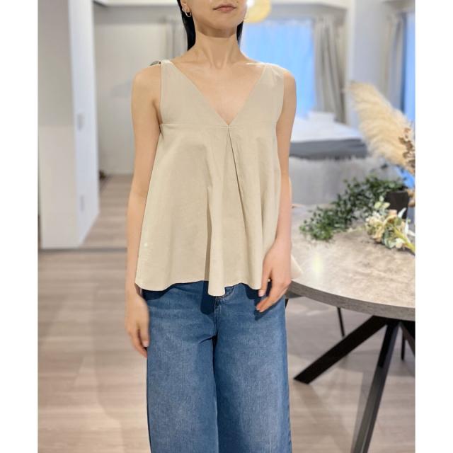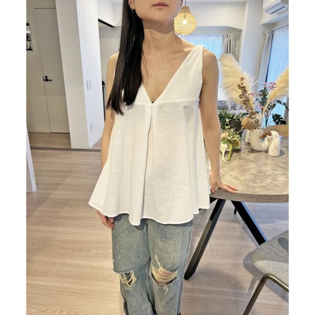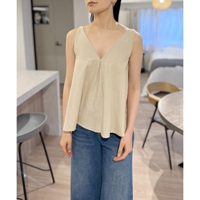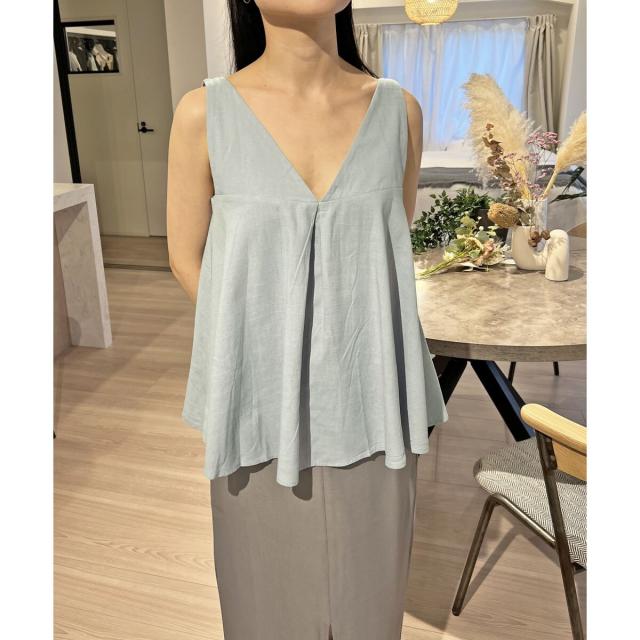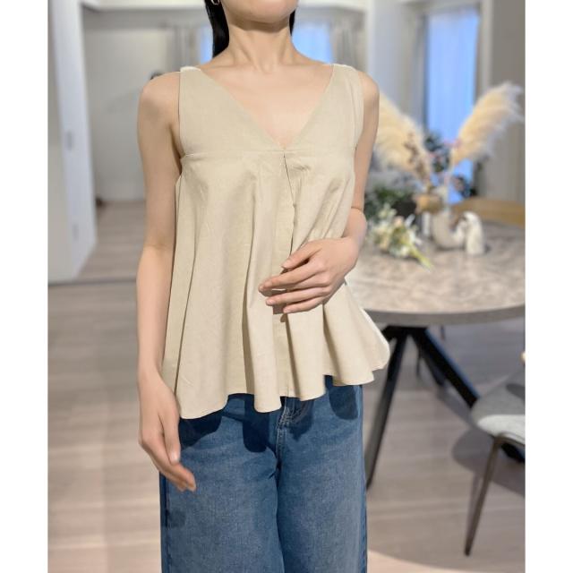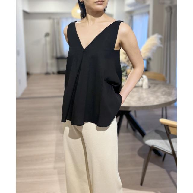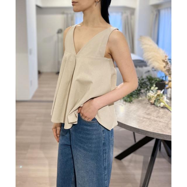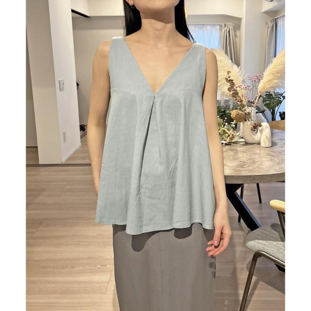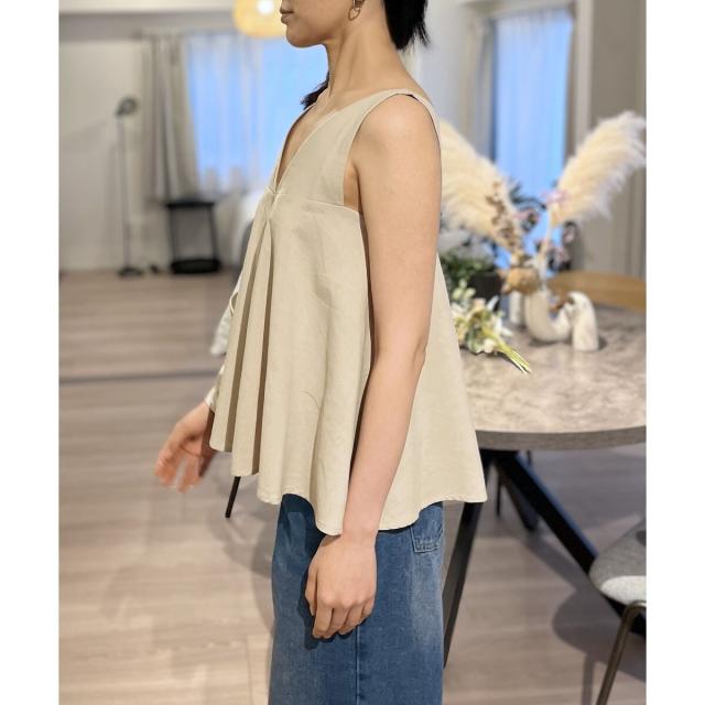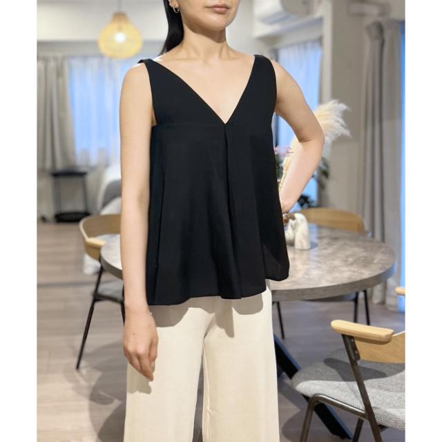 Vネックタックフレアノースリーブチュニック