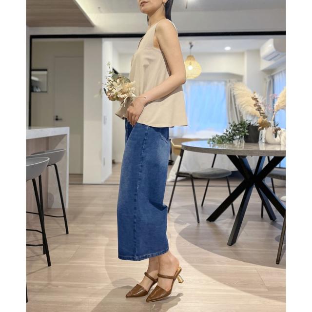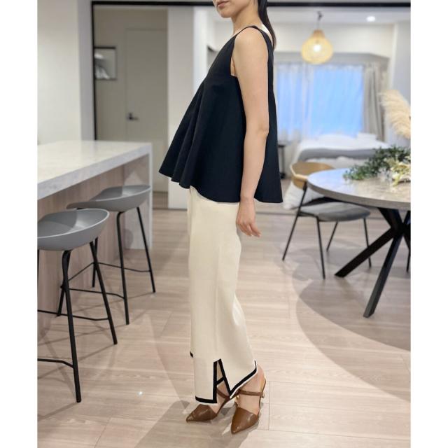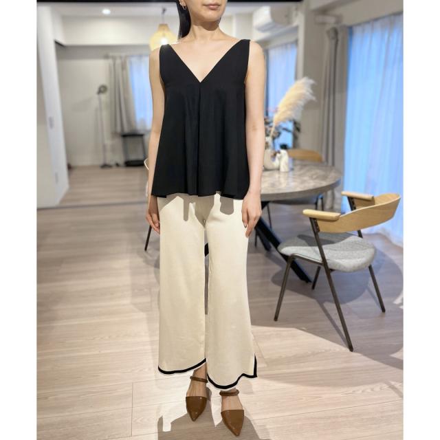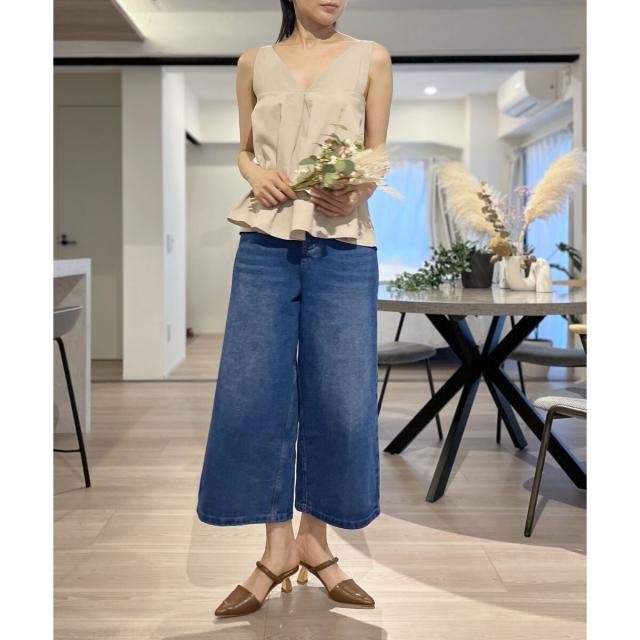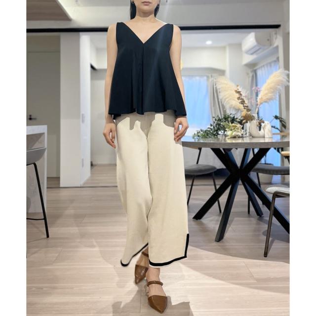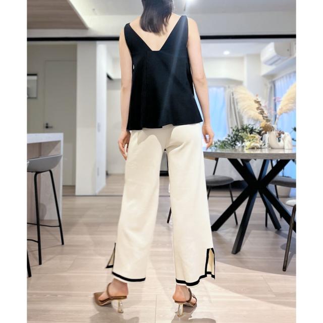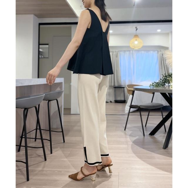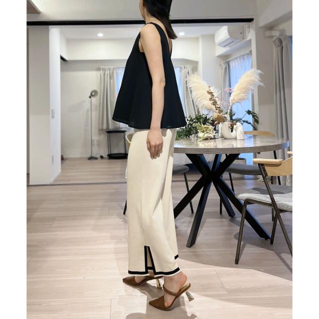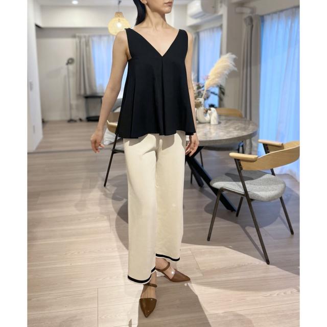 首回りが広めに開いているので、ボリューム感のあるボトムスでも