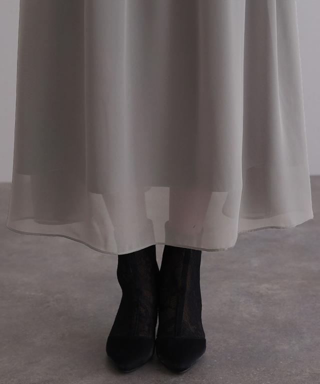 総シフォンなので着心地も軽やかで裾の広がりも綺麗なドレスです。