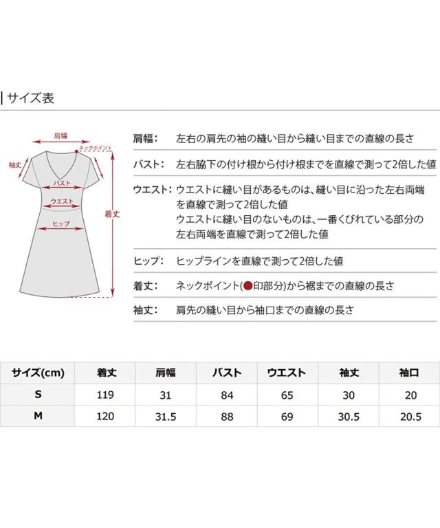 S/着丈119|肩幅31|身幅42|ウエスト幅32.5|袖丈30|袖口20