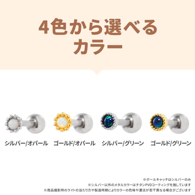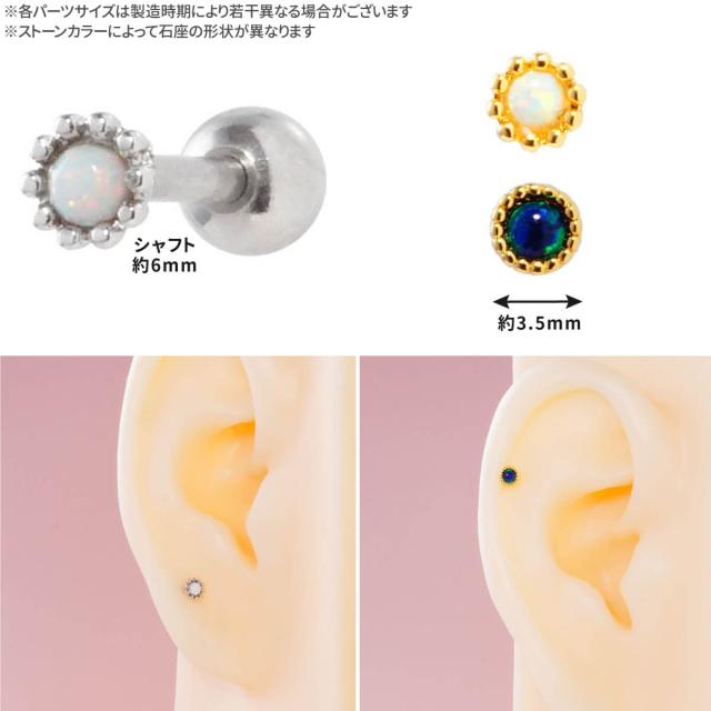 ミニ オパール ストレートバーベル 14G 16G 18G サージカルステンレス ジルコニア ジュエル ヘリックス 軟骨ピアス ボディピアス 小さめ