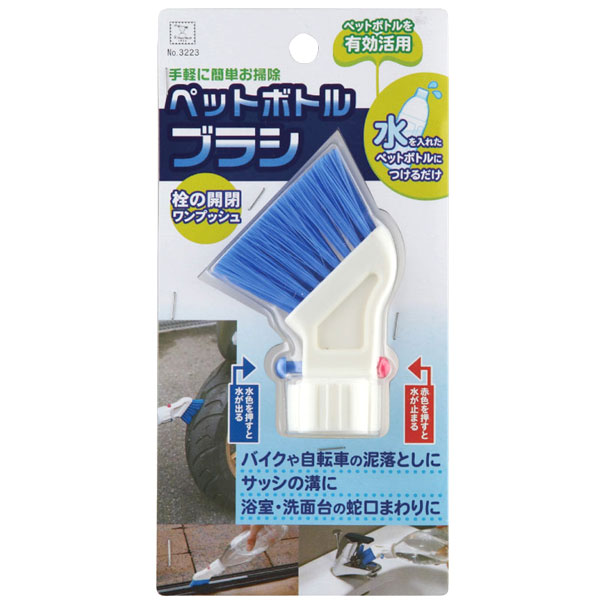 水を入れたペットボトルにつけるだけで、どこでも簡単に水洗いができます。