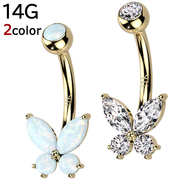 ヘソピアス 14G 14K ゴールド ミニ バタフライ 蝶々 ジュエル バナナバーベル ボディピアス へそピアス 耳ピアス ヘソピアス レディース メンズ ボディピアス