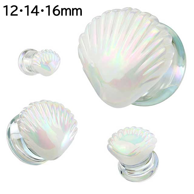 ボディピアス 12mm 14mm 16mm グラスプラグ ホワイトシェル ダブルフレア 拡張ピアス ラージホール ラージゲージ