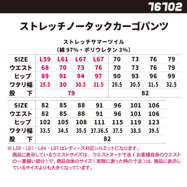 ※L59・L61・L64・L67はレディース対応サイズです。