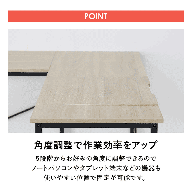 そんなL字型にさらに「角度調整ができる天板」が加わって、より便利な仕様で新登場しました。