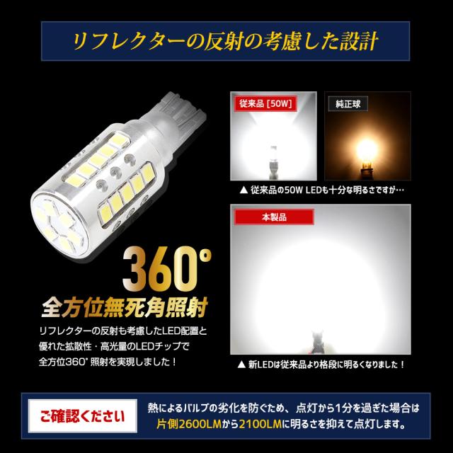 デリカミニ 適合 バックランプLED T16 2600LM 2個1セット