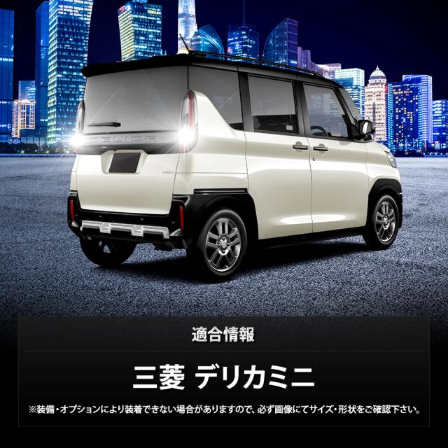| 適合 | 三菱 デリカミニ 令和5年5月〜 令和7年9月 全グレード適合 ※装備・オプションにより装着できない場合がありますので、必ず画像にてサイズ・形状をご確認下さい。 |