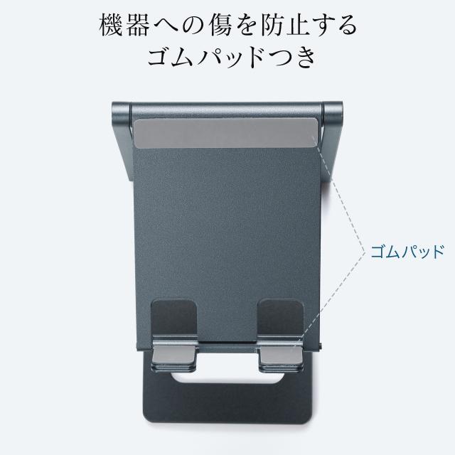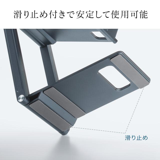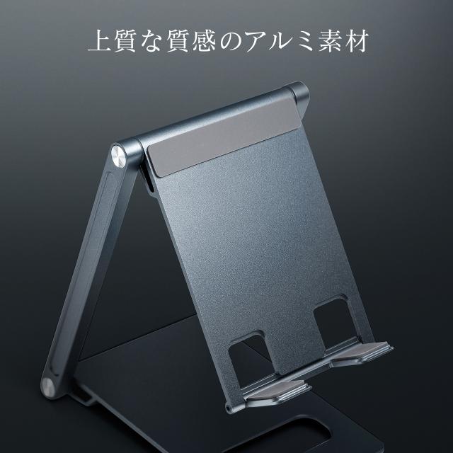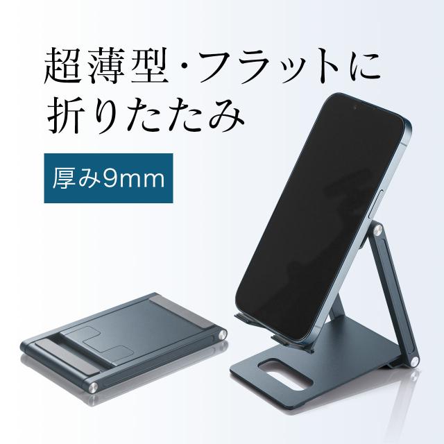 モバイルスタンド 折りたたみ式 超薄型9mm アルミ製 持ち運び 無段階 角度調整 タブレットスタンド スマホスタンド[200-STN075]