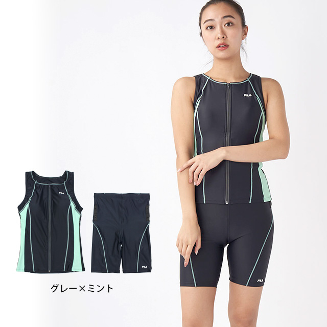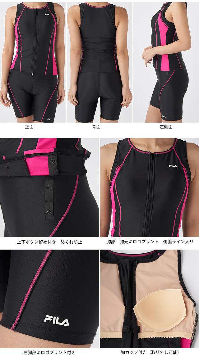 フィットネス 水着 レディース セパレート 女性用 フィラ FILA ノースリーブ 前ファスナー 体型カバー 9号 11号 13号