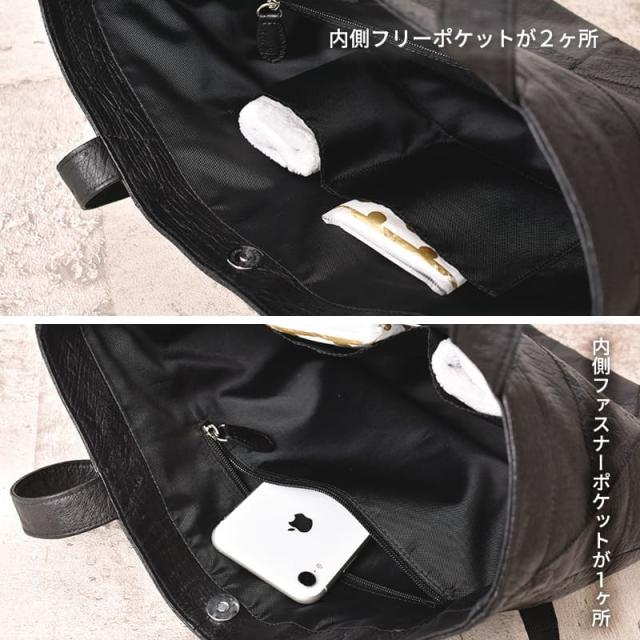 - まるいプツプツの部分がたくさん使われているバッグでした 素材に主張があるので色はグレーにしました 袋有料化に伴いトートバッグばかり買っていますがなかなか良いです 本革、合皮などの表示が信頼できるショップで安心納得の上で購入できます