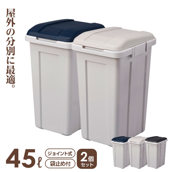 ごみ箱 ジョイント分別ペール 2個セット 45L ブルー / グレー / ブラック | ゴミ箱 フタ付き 資源ごみ 仕分け 連結 屋外 屋内 室内 45リットル おしゃれ