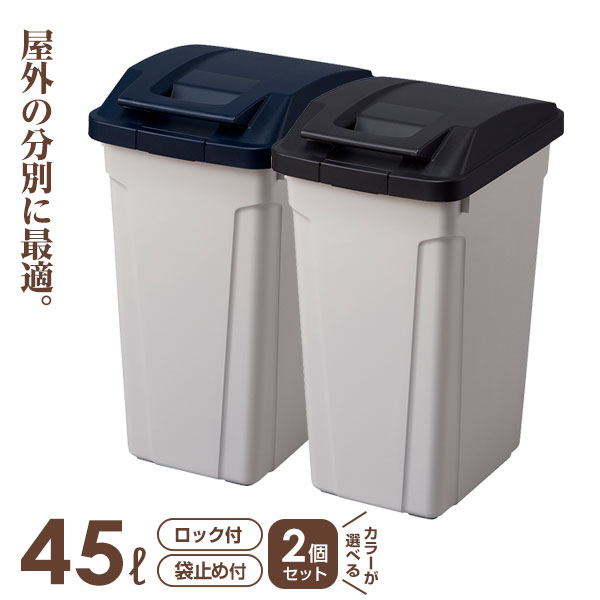 ごみ箱 ハンドル付分別ペール 2個セット 45L ブルー / ブラック | 分別 ダストボックス 屋外 ハンドル 45リットル 開けやすい おしゃれ ベランダ スリム
