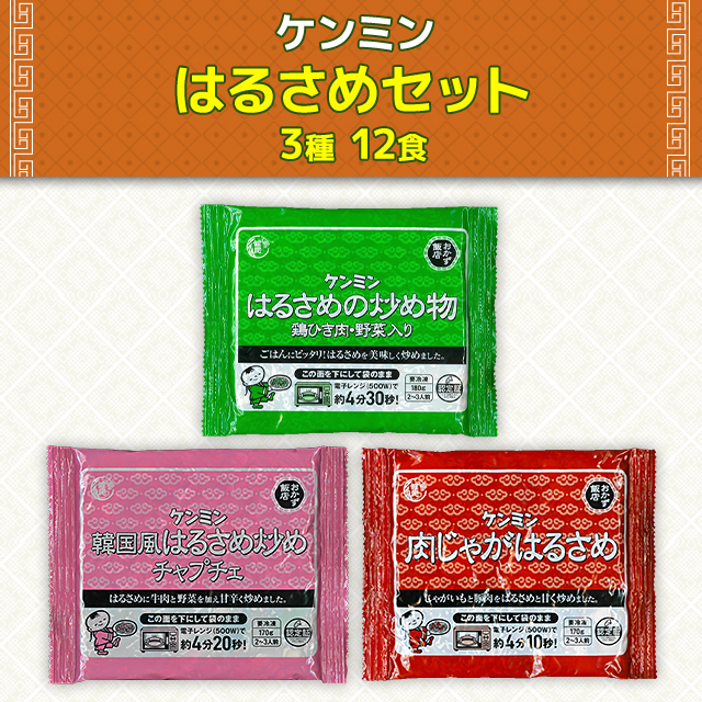 送料込み ケンミン はるさめセット 3種 12食 はるさめの炒め物 180g・ 韓国風はるさめ炒め 170g ・ 肉じゃがはるさめ 170g 各4食(合計12食) 冷凍 惣菜 春雨 はるさめ セット アソート 食べ比べ ケンミン食品