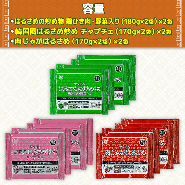 商品名 ケンミン はるさめセット 3種 12食 容量 はるさめの炒め物 鶏ひき肉・野菜入り:(180g×2袋)×2袋