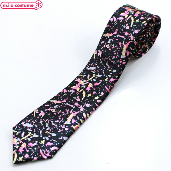 1308K■【送料無料・即納】B品 ネクタイ 細身吹雪柄 色:黒 ブラック マルチカラー ペイント 飛び散り スクール カジュアル オシャレ ハロウィン コスプレ