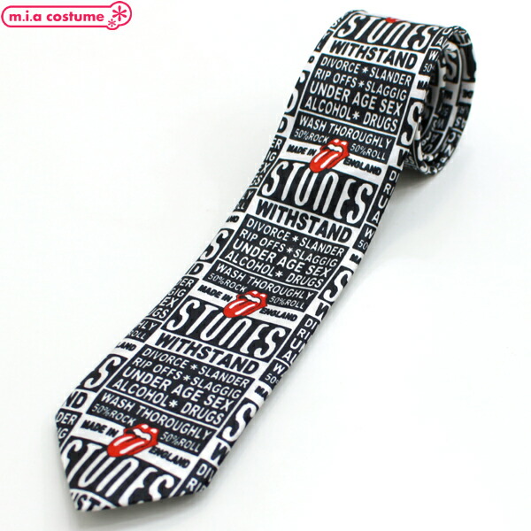 1308I■【送料無料・即納】B品 ネクタイ パンクストーンズ 色:白×黒 ホワイト ブラック パンク バンド 唇 スクール カジュアル オシャレ ハロウィン コスプレ