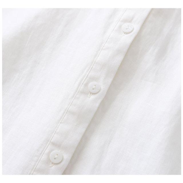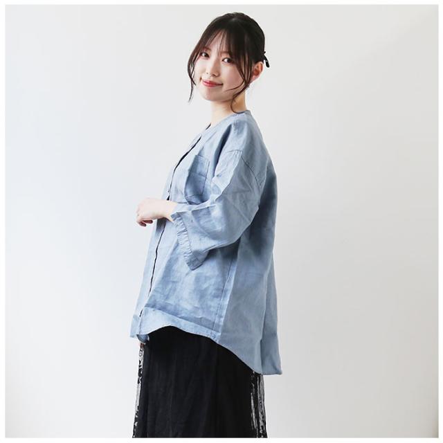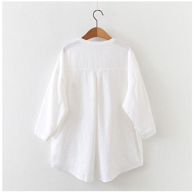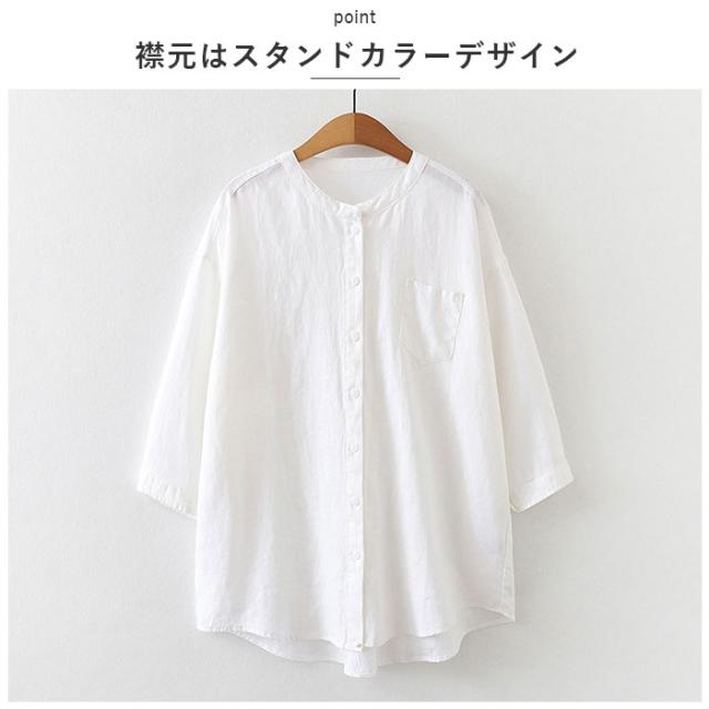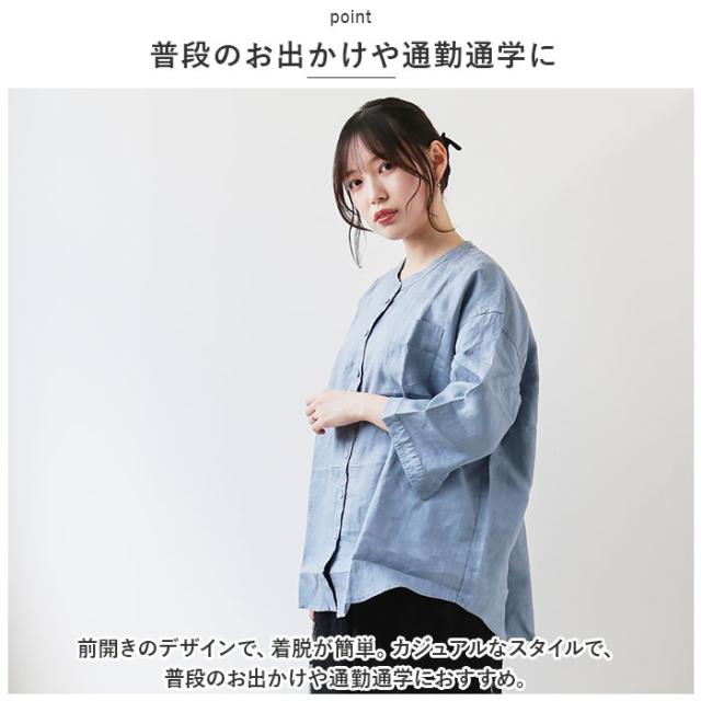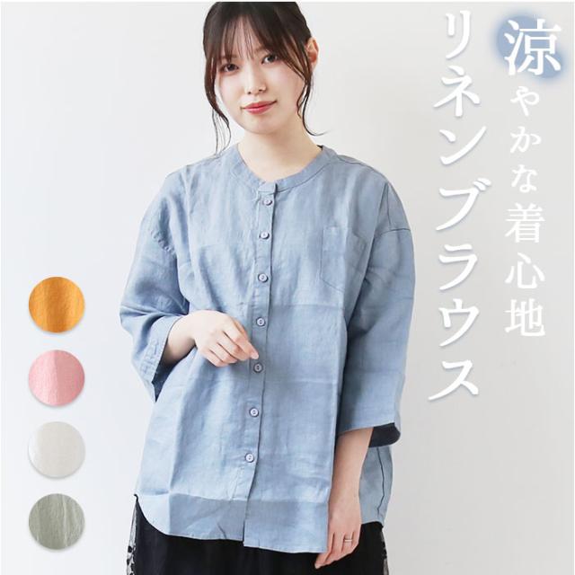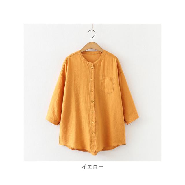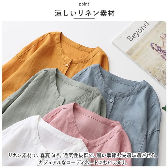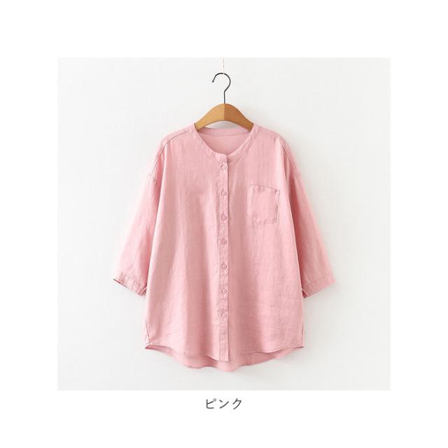 ブラウス 七分袖 レディース 通販 シャツ 丸首 レディースシャツ シャツブラウス リネン 普段着 部屋着 前開き カジュアル シンプル 通勤 通学 春 夏 トップス