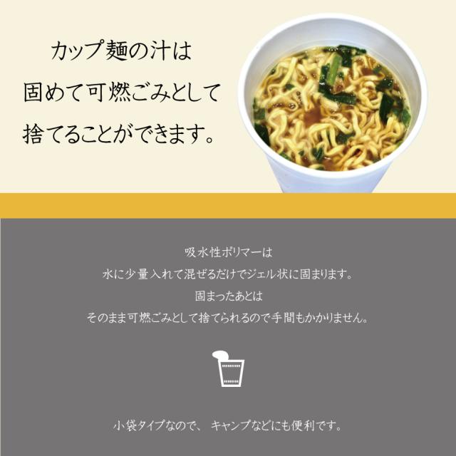 カップ麺の残った汁固める凝固剤 吸水 カップ ラーメン 汁 スープ 固める ジェル 固形 可燃ごみで捨てれる キャンプ アウトドア ごみ ゴミ 固める 剤