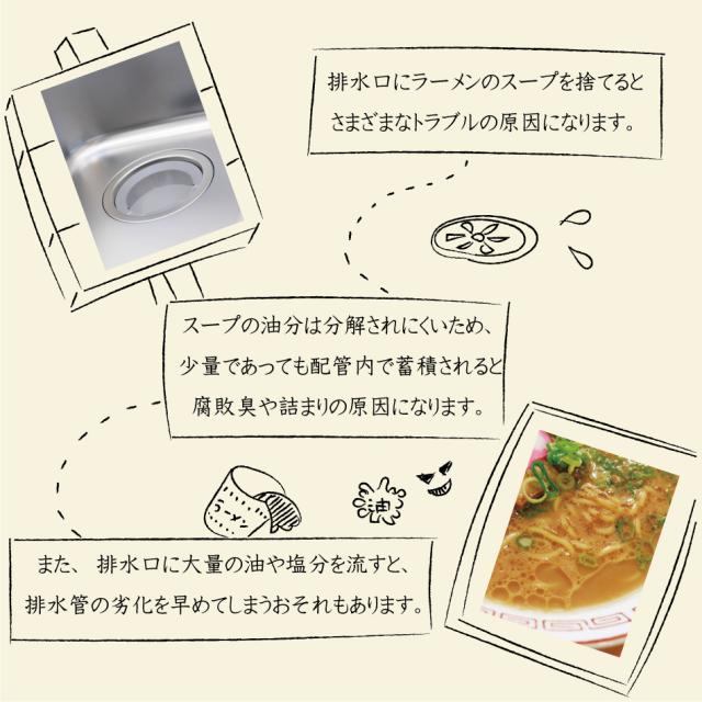 ラーメンのドロドロした汁(スープ)を排水溝やトイレに流さずに固めて捨てる!