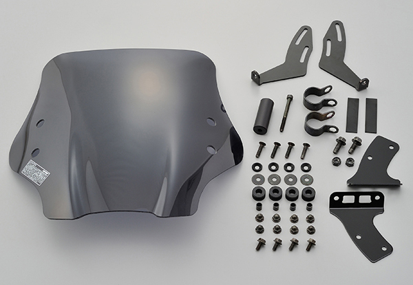 ウインドシールドの素材は日本製のポリカーボネート(厚さ3mm)を採用。