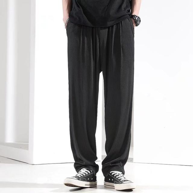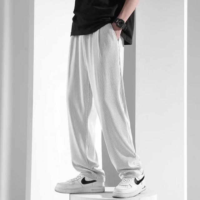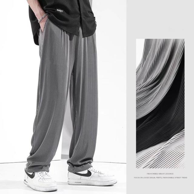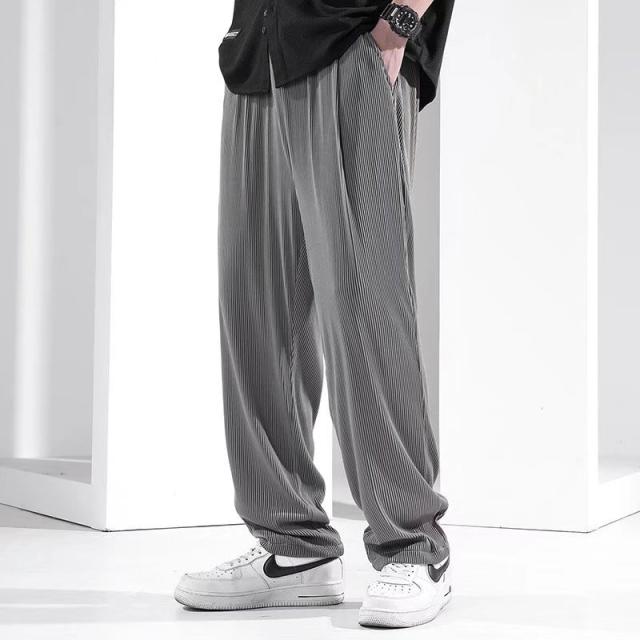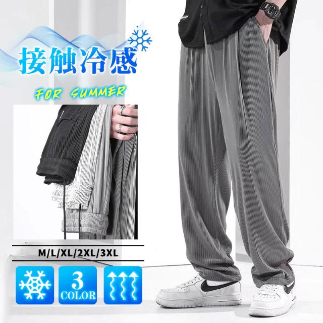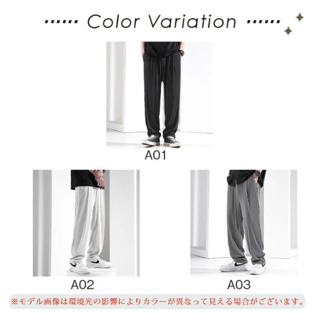 ジョガーパンツ ワイドパンツ メンズ 夏服 ゆったり アイスシルク 接触冷感 ひんやり 薄手 無地 ドレープ ロング丈 涼しい ス