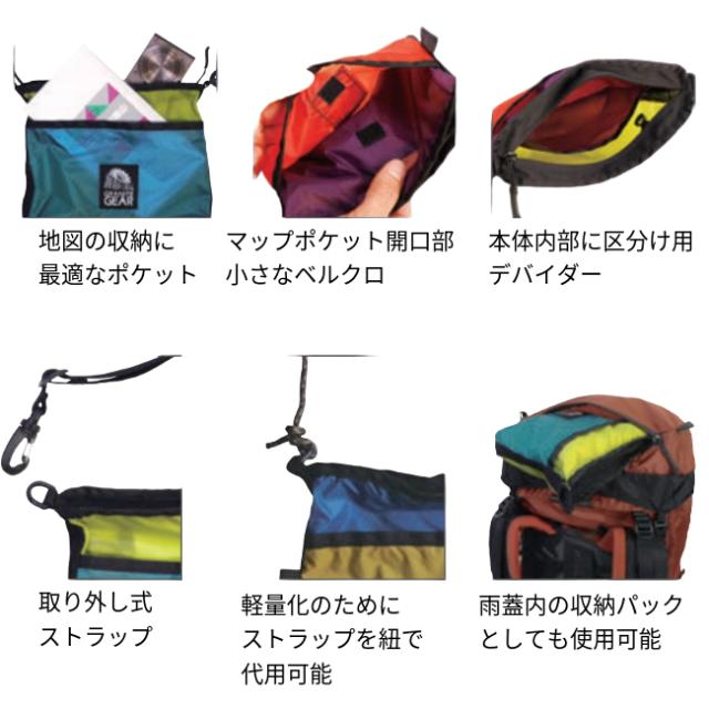 取り外し式ストラップは軽量化したい時には細引きに交換したり、外した状態でパック内の収納バックとしても使えます。