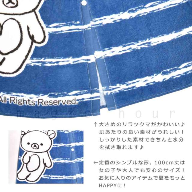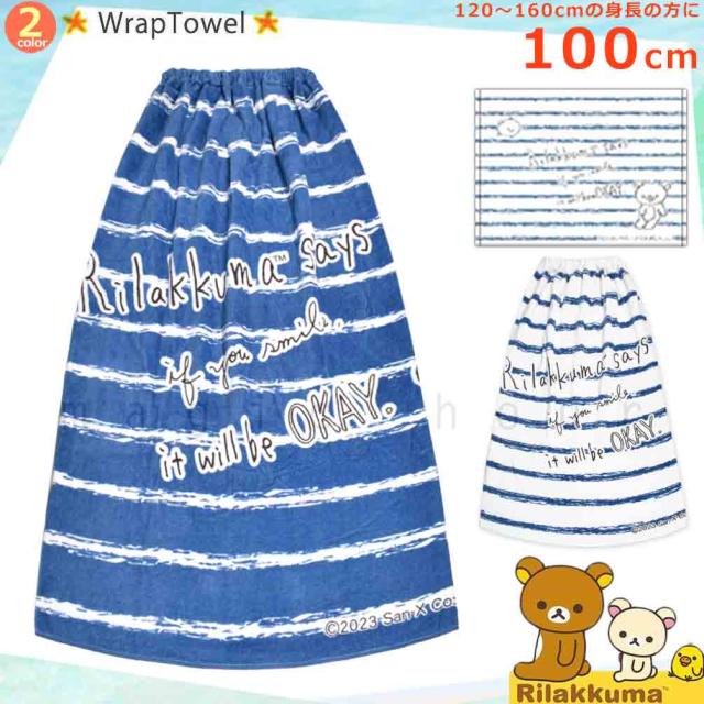 プール タオル ラップタオル 100cm 子供 巻きタオル リラックマ キッズ お着換えタオル 女の子 水泳 子ども スイミング サンリオ ブランド かわいい 青 ホワイト
