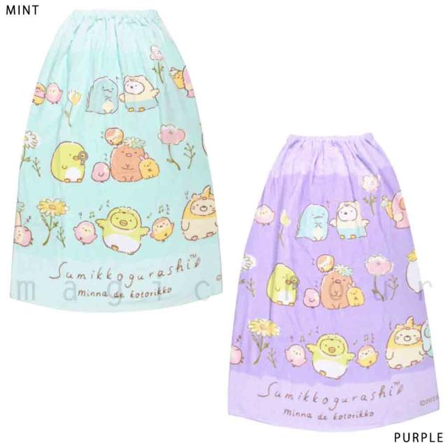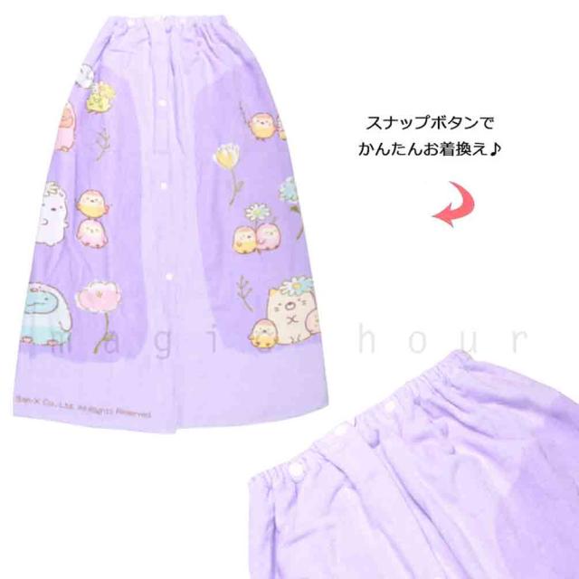 プール タオル ラップタオル 90cm 子供 巻きタオル すみっコぐらし キッズ お着換えタオル 女の子 男の子 水泳 子ども スイミング かわいい ミント 紫 パープル