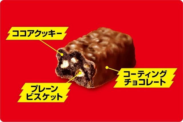 ココアビスケットとプレーンビスケットを練りこんだビスケット生地にチョコレートをコーティングしたお菓子です。ブラックサンダーブランドで好評いただいている食感にフォーカスし、「圧倒的ザクザク感」をコピーと勢いのあるお菓子写真で訴求した新パッケージにリニューアルしました。