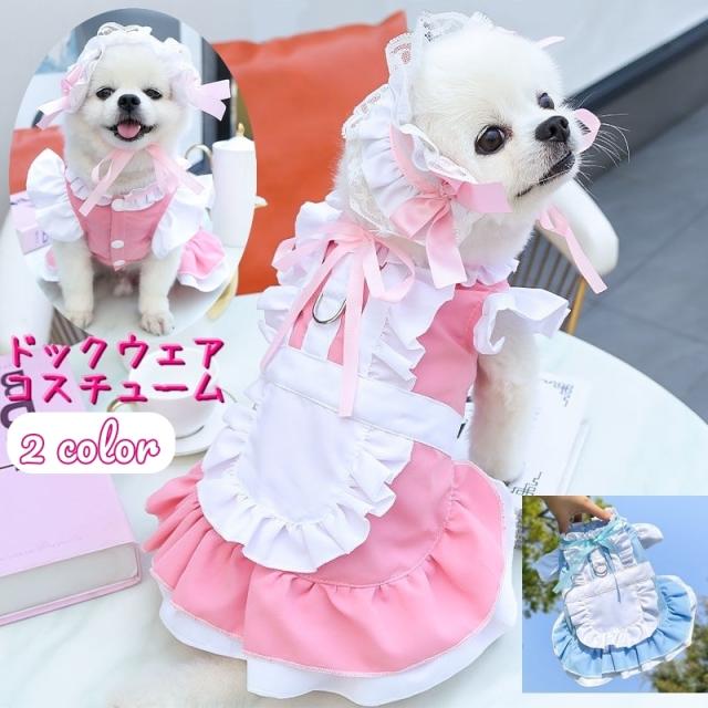 ドックウェア ペットウェア キャットウェア コスチューム メイド服 犬 猫 フリル リボン かわいい