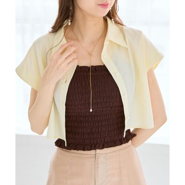 マジェスティックレゴン(MAJESTIC LEGON)/パールボタン肩あきショートシャツ