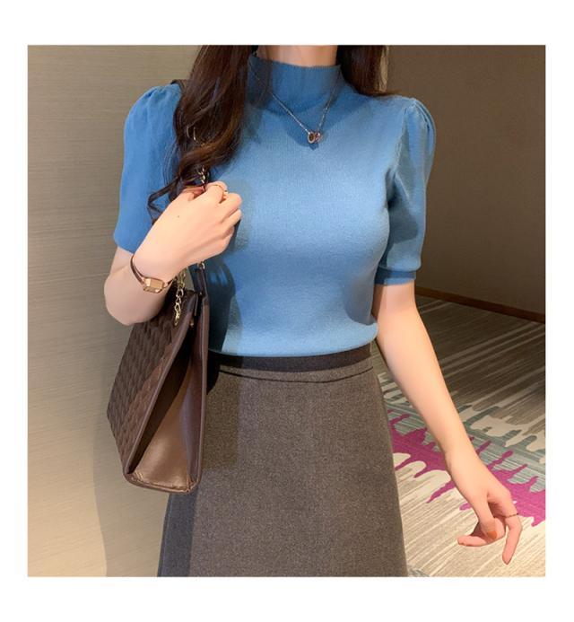 ☆キーワード:ニット 二の腕カバー 五分袖 半袖 サマーニット ハイネック トップス 半袖ニット シンプル 涼しい 冷房対策 きれいめ オフィス カジュアル 20代 30代 40代 エレガント 母の日 プレゼント ニットセーター コーデ プチハイネック 五分袖 モックネック ドルマンスリーブ ぽわん袖 Tシャツ おしゃれ ゆったり カジュアル 韓国風 通勤 通学
