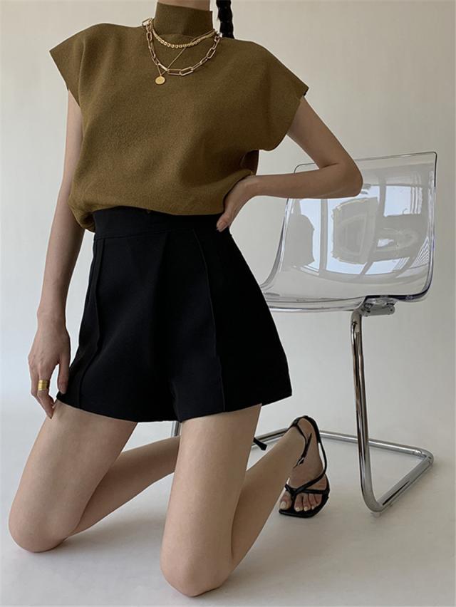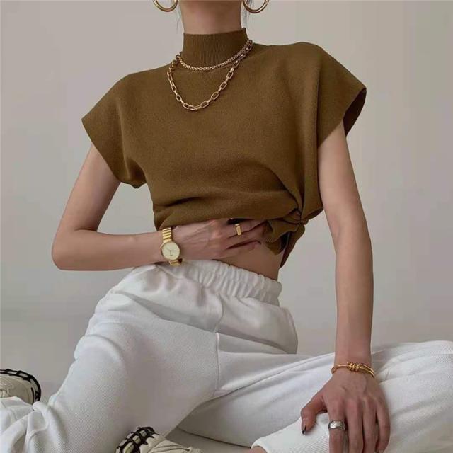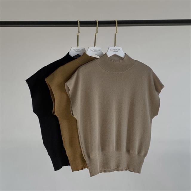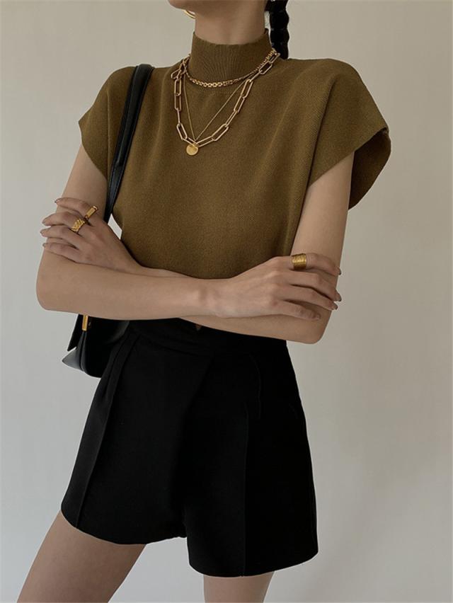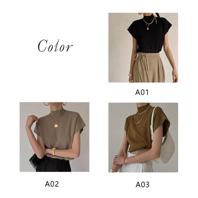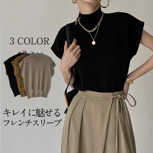 ニット 半袖 ハイネック レディース トップス プルオーバー インナー 無地 春 夏 秋 薄手 体型カバー シンプル エレガント