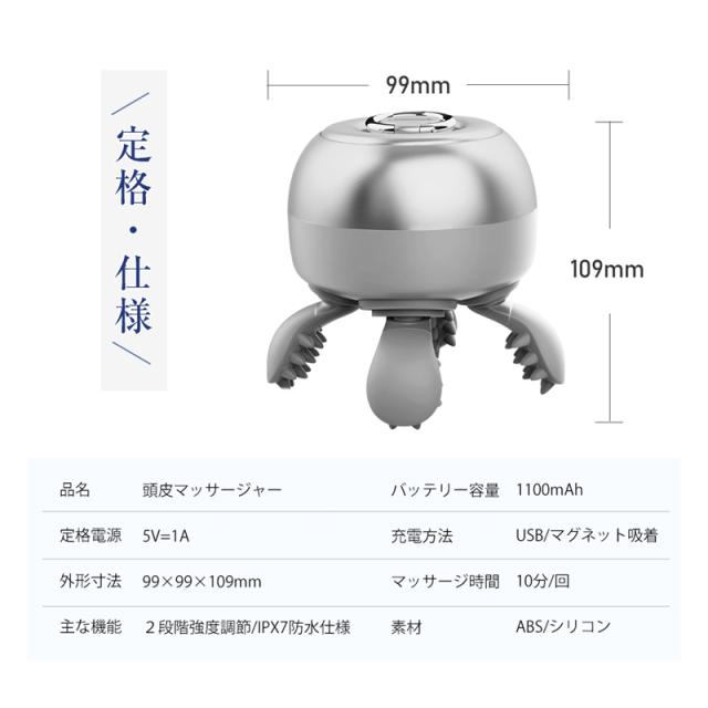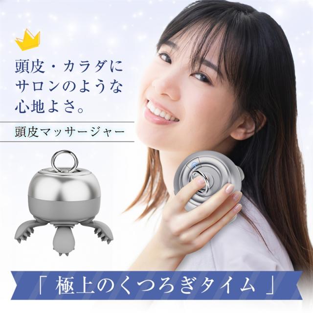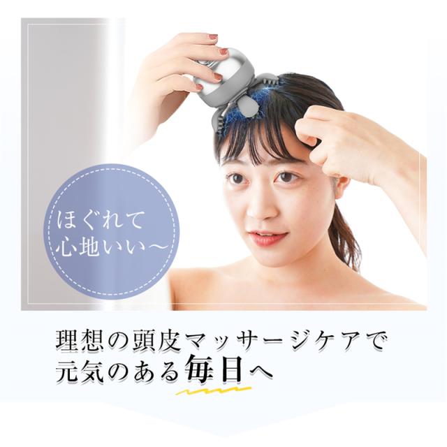 【自宅ヘッドスパ】自宅で手軽にヘッドスパの心地よさが味わえる電動ヘッドマッサージャー。自動で頭皮を揉みほぐしたり、頭皮の汚れを落としたりすることで、頭皮疲労を緩和し、気分をリフレッシュします。更に美容効果も期待できるアイテムです。