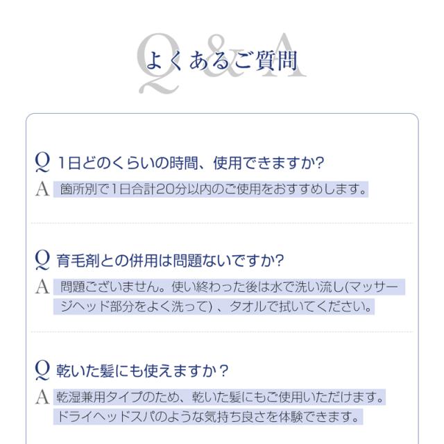 - 自分で頭皮マッサージをするのにも限界があり、こちらを購入しました。楽にマッサージすることができて、かなり気持ちいいです!お風呂で使ったときには、リラックスした状態でのマッサージでより気持ち良く感じます...