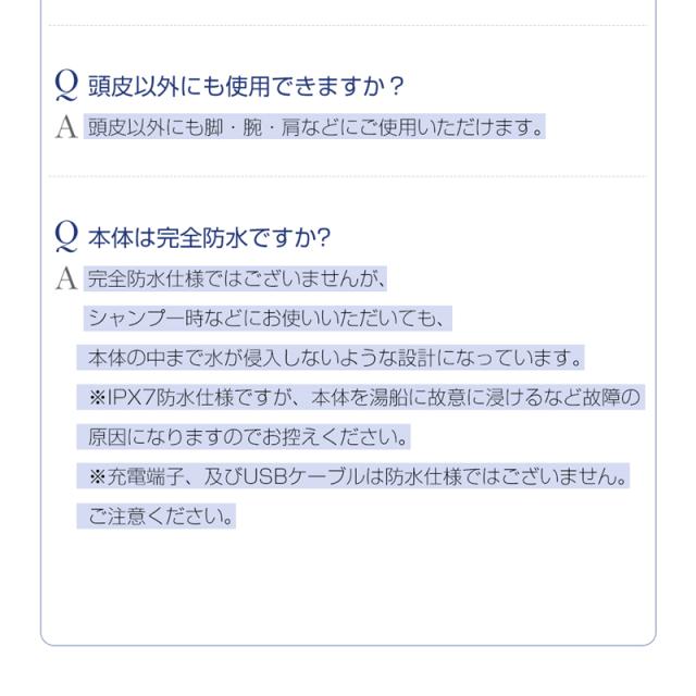 1.頭皮以外、二の腕や首筋、肩など色んな部位に使える。