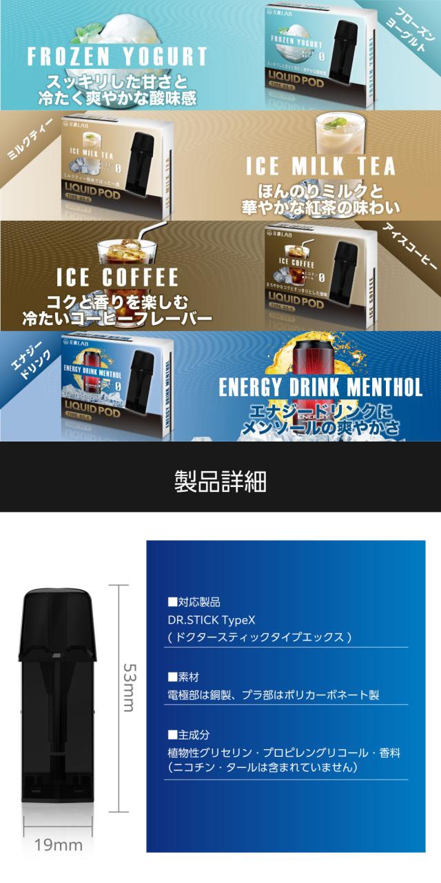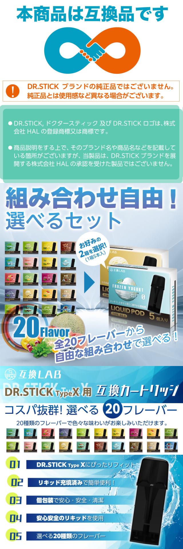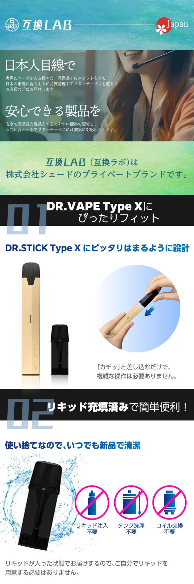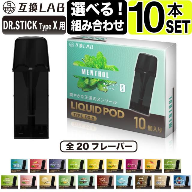互換LAB ドクタースティック タイプX用 互換カートリッジ DR.STICK type X用 ドクタースティック用 リキッド 本体 新型 使い捨て 電子タバコ ベイプ VAPE リキッド フレーバー ポッド POD 互換ラボ メンソール ミント 充填済み 個包装 爆煙